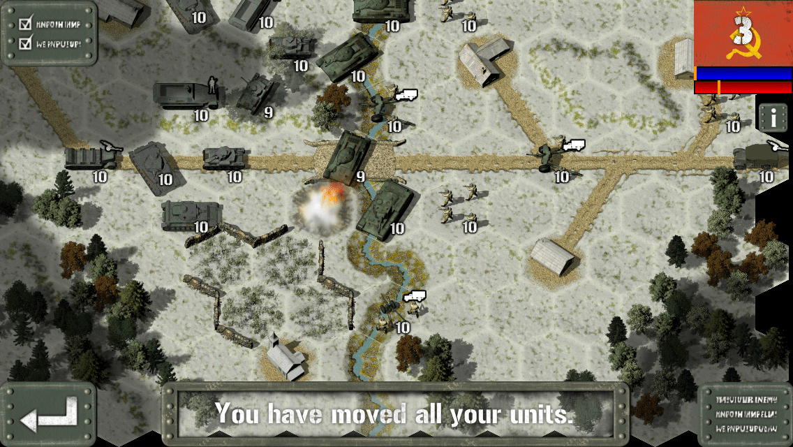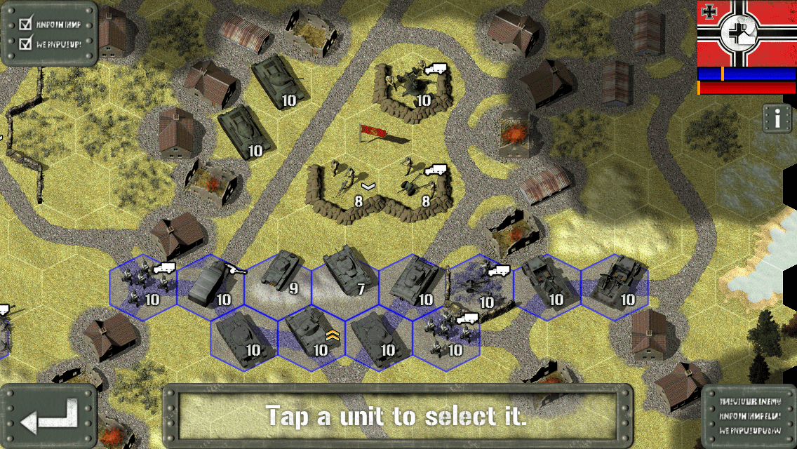 As war escalates, both sides trade obsolete equipment, such as the Panzer I and T-26, for more advanced units, which include flamethrower infantry and heavy machine guns.